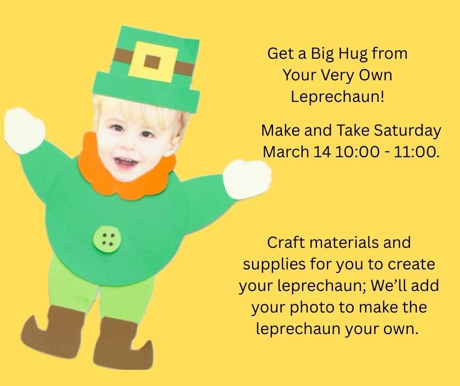 Make and Take Leprechauns. Create your own leprechaun with YOUR photo for the place. maybe you will find the pot of gold!