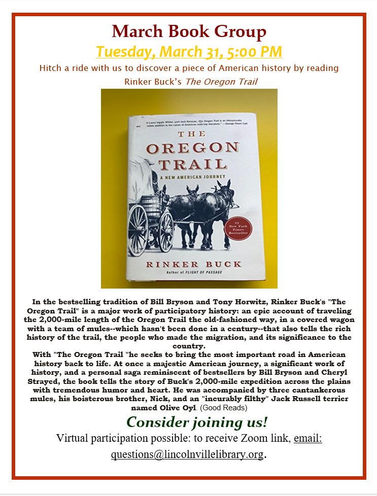 March Book Group discusses Rinker Buck’s “The Oregon Trail”
